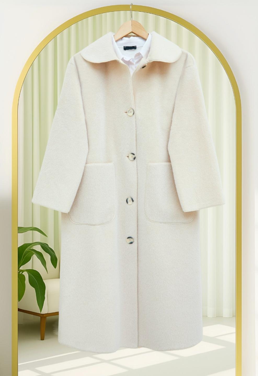 Kış aylarının vazgeçilmezi olan Angora kaban, eşsiz sıcaklık ve şıklığı bir araya getirerek her kadının dolabında mutlaka bulunması gereken bir parçadır. Ekru rengiyle zarif ve sade bir görünüm sunan bu kaban, farklı kombinlere uyum sağlamasıyla dikkat çekiyor.