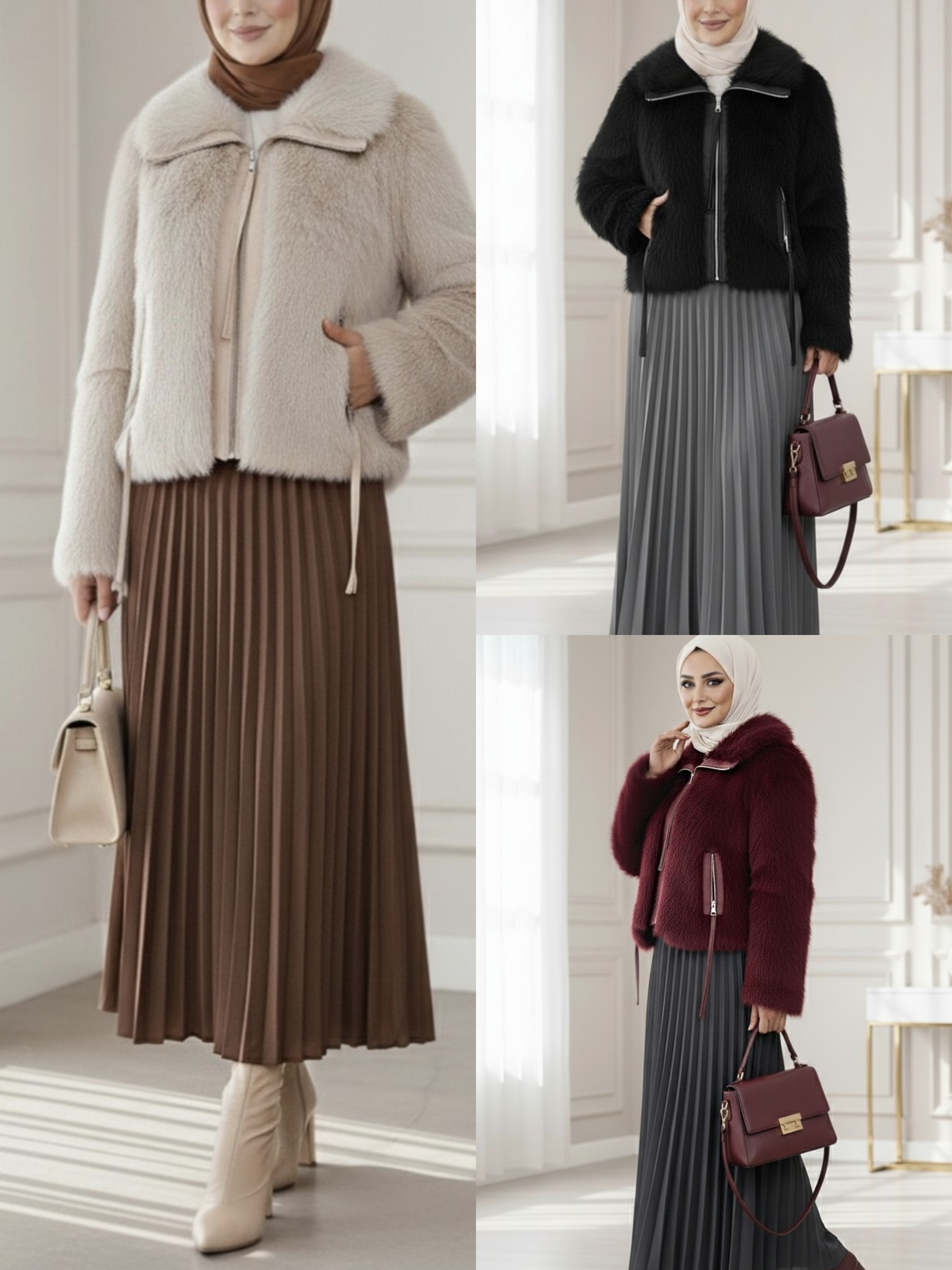 Sonuç olarak, Deri Garnili İçi Astarlı Femuarli İp Detaylı Kürk Mont, şıklığı ve konforu bir arada sunan vazgeçilmez bir parça. Kış modasında stilinizi tamamlarken, aynı zamanda sıcak kalmanın keyfini çıkarabilirsiniz. Zarif görünümüyle her türlü etkinlikte dikkat çekici bir tercih olacak bu mont, dolabınızda mutlaka yer alması gereken bir üründür.