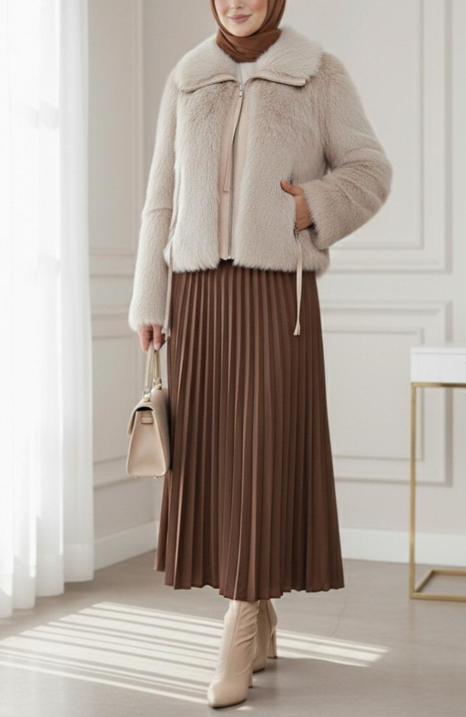 Soğuk kış günlerinde şıklığınızı ve sıcaklığınızı korumanız için tasarlanmış olan Deri Garnili İçi Astarlı Femuarli İp Detaylı Kürk Mont, kış sezonunda vazgeçilmez bir parça olacaktır. Taş rengi ile şıklığı ve zarafeti ön plana çıkaran bu mont, her türlü kıyafetle mükemmel bir uyum yakalayarak stilinizi tamamlar.