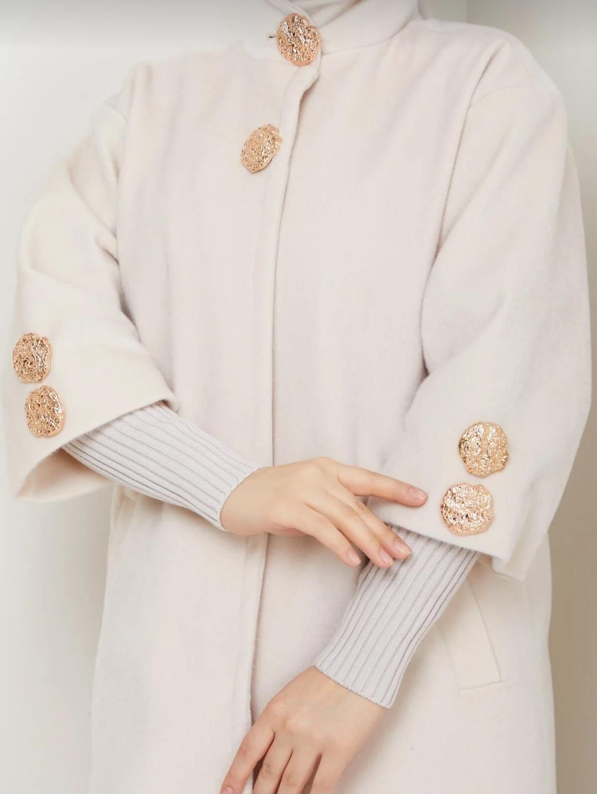 Dik Yaka Bilek Ucu Ribanalı Gold Düğme Detaylı Fok Kumaş Şık Kaban