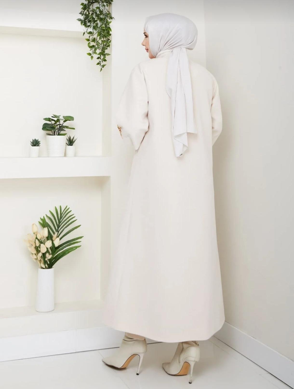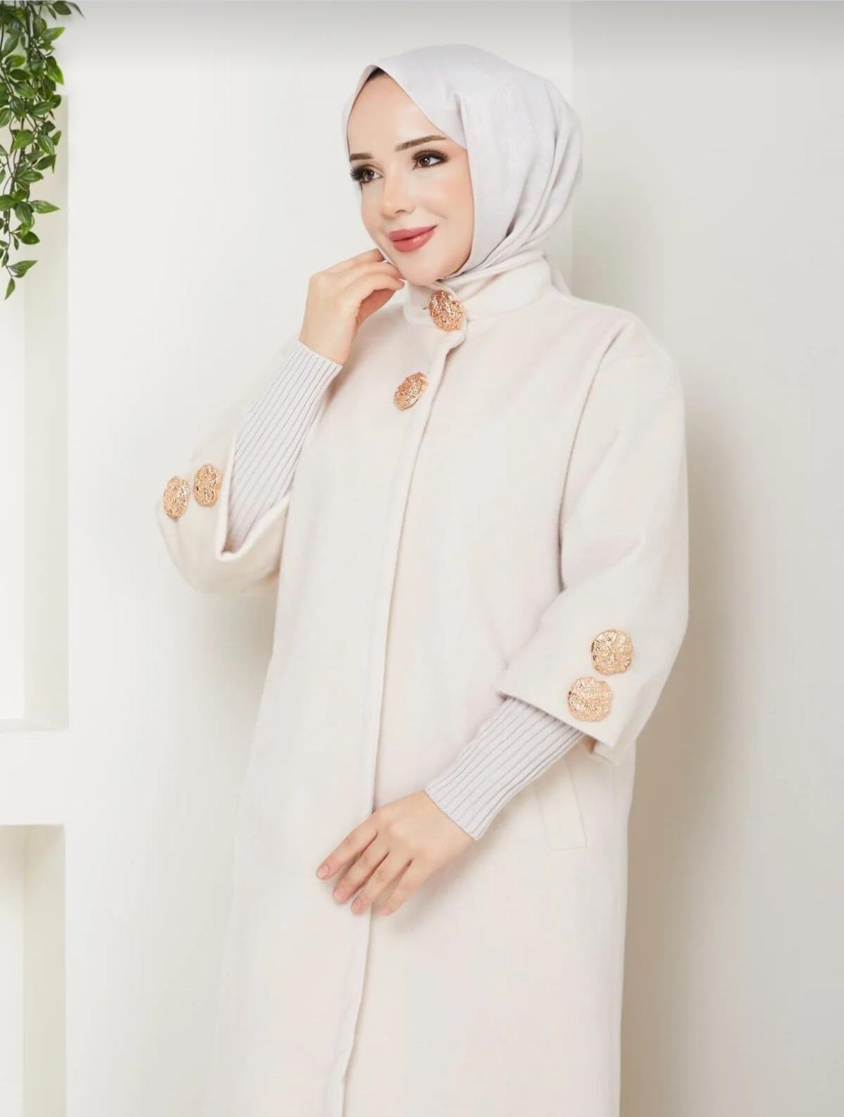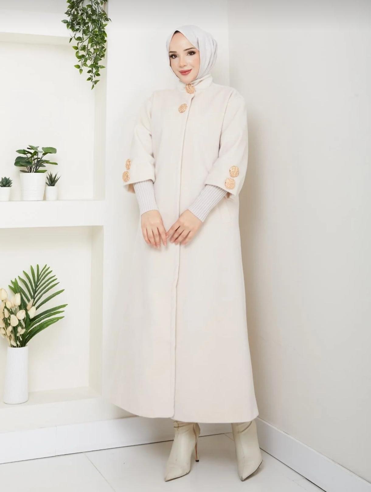 Şıklığı, konforu ve zarafeti bir arada sunan Dik Yaka Bilek Ucu Ribanalı Gold Düğme Detaylı Fok Kumaş Şık Kaban, kış sezonunun vazgeçilmez parçalarından biri olmaya aday. Kabanımız, sofistike tasarımı ve kaliteli materyali ile dikkat çekiyor. Soğuk havalarda sıcacık kalmanızı sağlarken, aynı zamanda stilinizi de tamamlayarak etkileyici bir görünüm elde etmenizi sağlıyor.