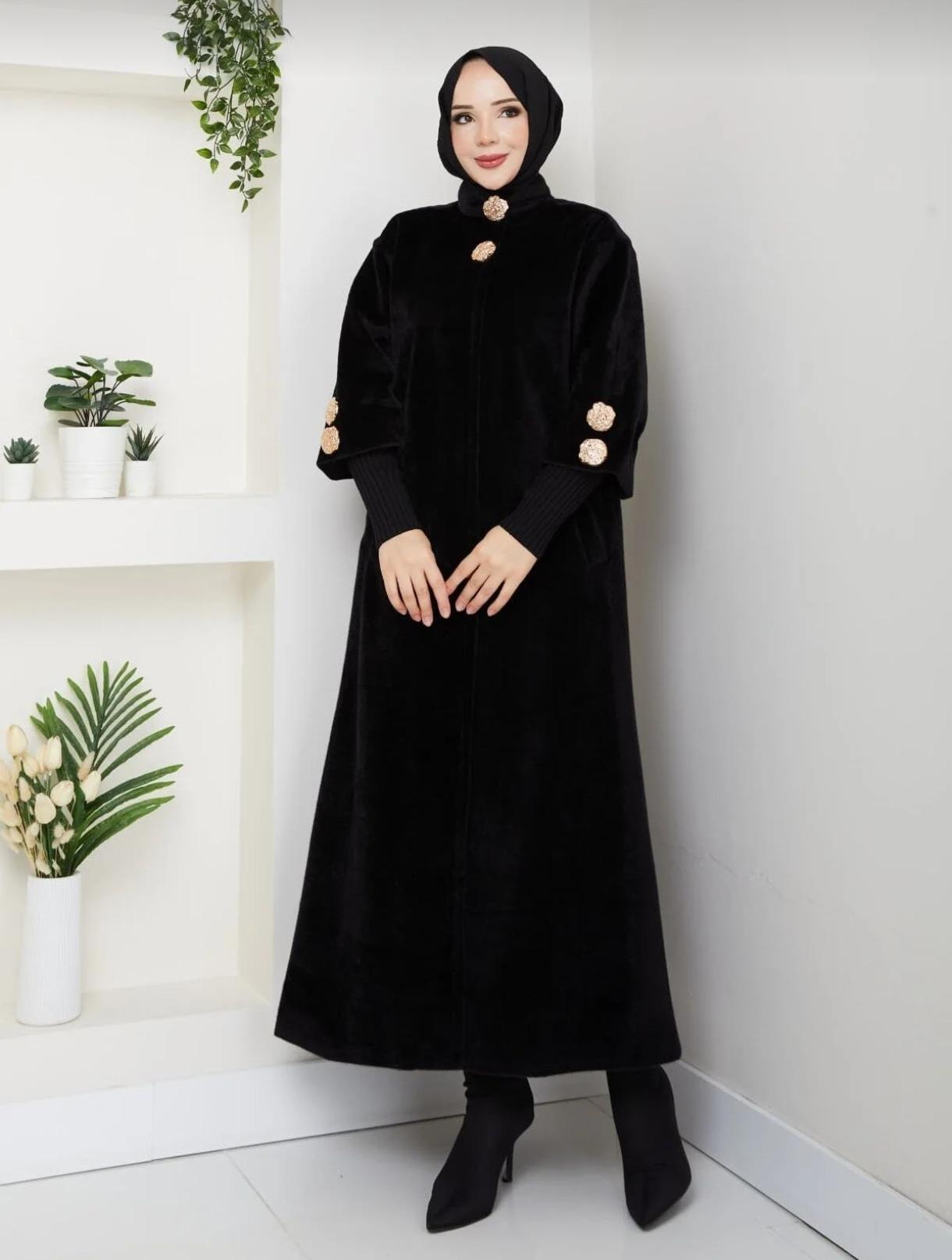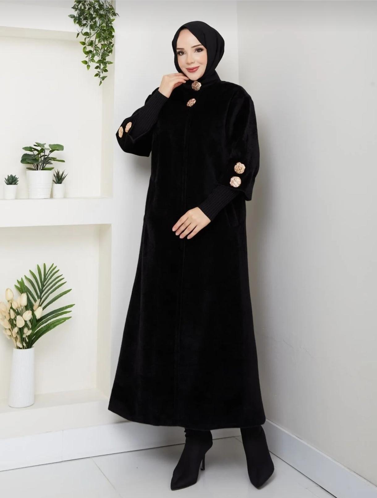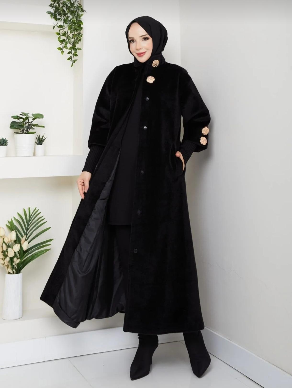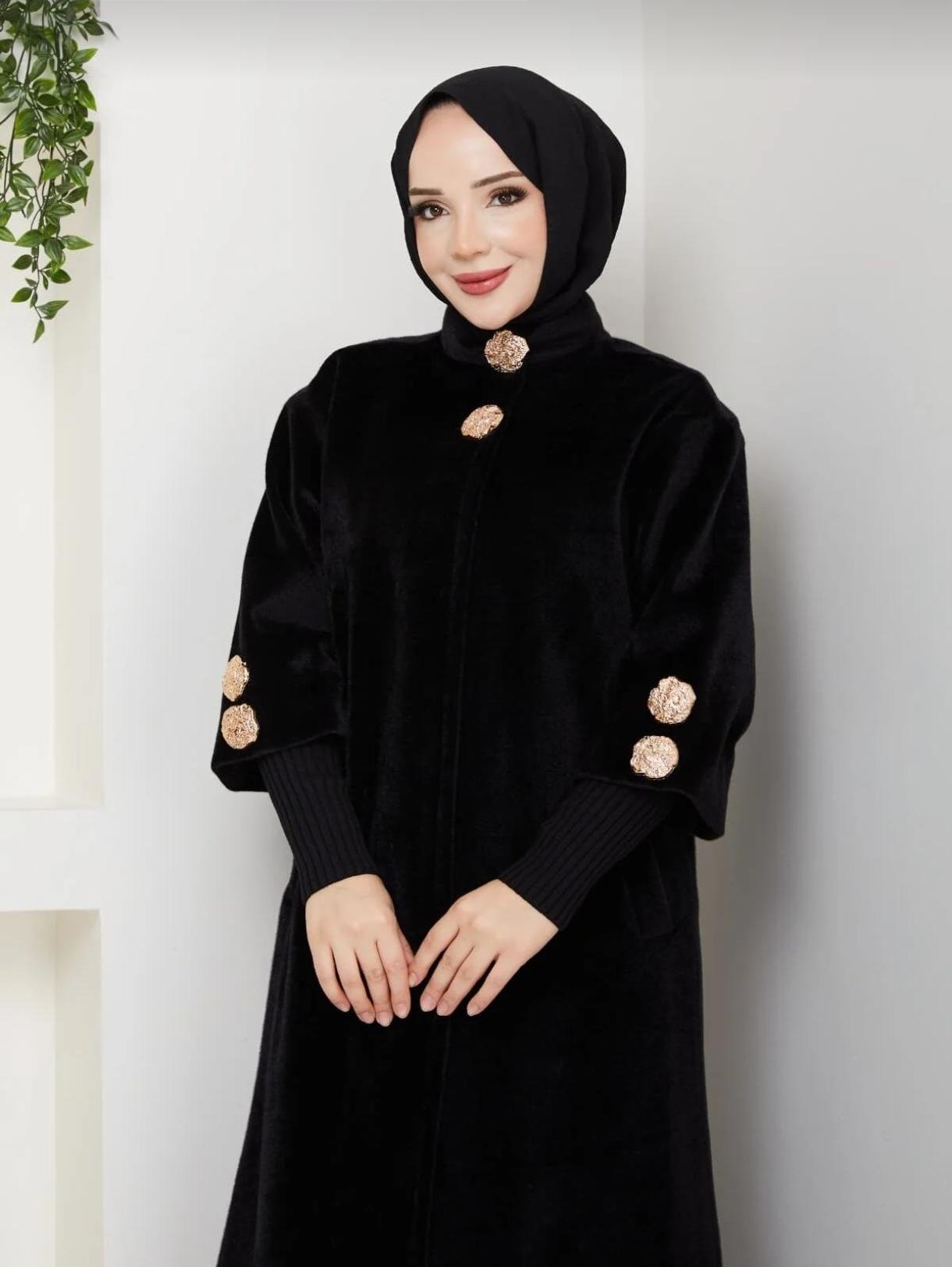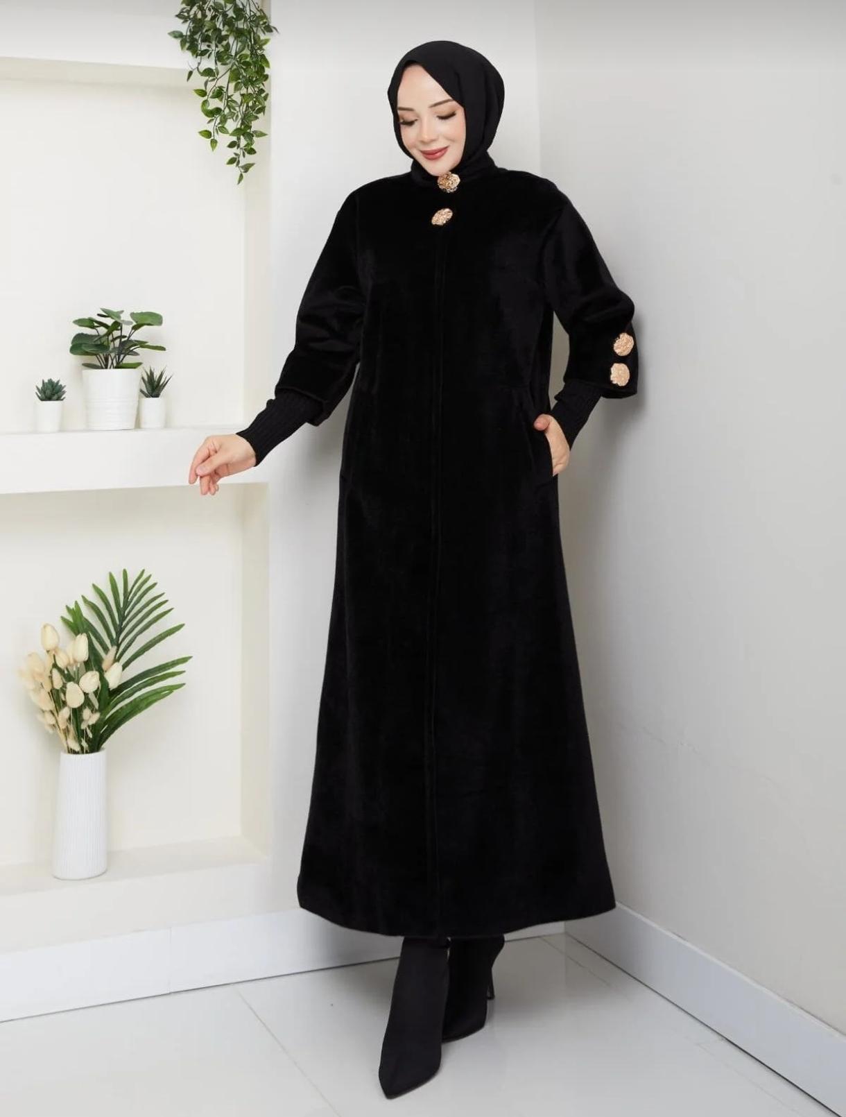 Şıklığı, konforu ve zarafeti bir arada sunan Dik Yaka Bilek Ucu Ribanalı Gold Düğme Detaylı Fok Kumaş Şık Kaban, kış sezonunun vazgeçilmez parçalarından biri olmaya aday. Kabanımız, sofistike tasarımı ve kaliteli materyali ile dikkat çekiyor. Soğuk havalarda sıcacık kalmanızı sağlarken, aynı zamanda stilinizi de tamamlayarak etkileyici bir görünüm elde etmenizi sağlıyor.