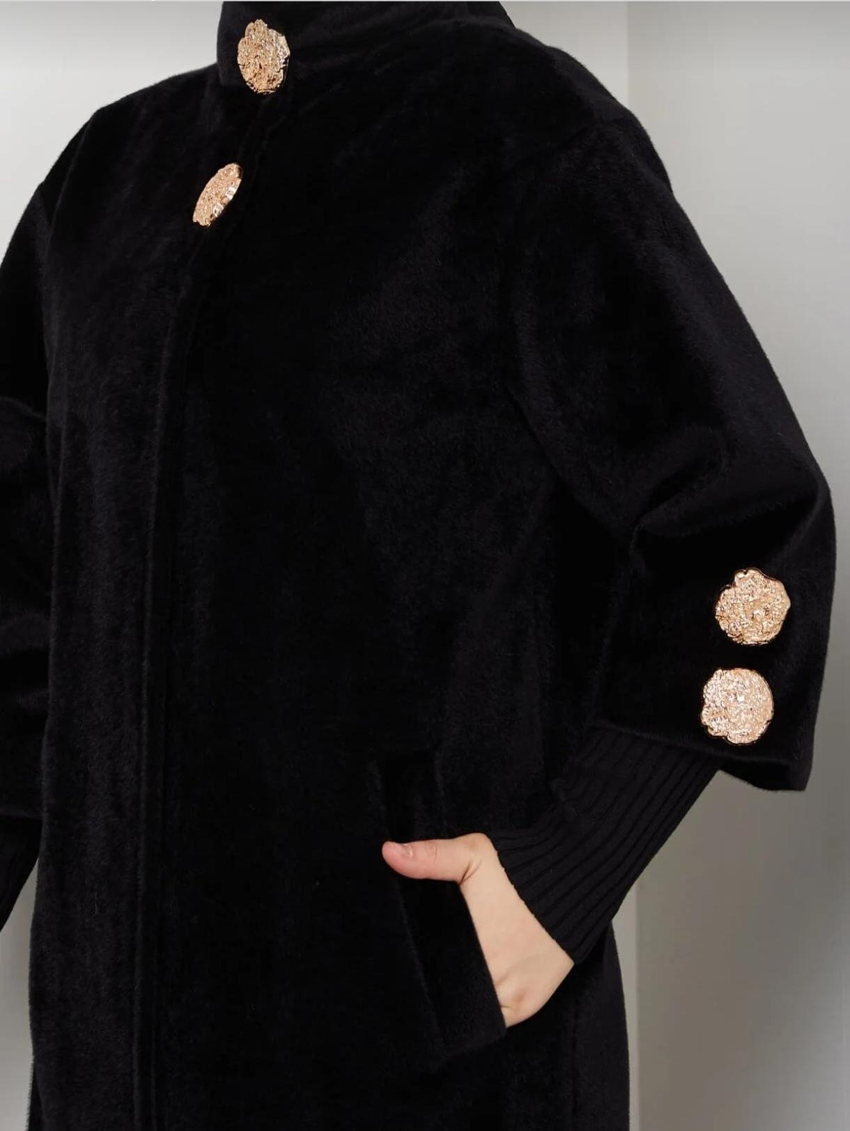 Dik Yaka Bilek Ucu Ribanalı Gold Düğme Detaylı Fok Kumaş Şık Kaban