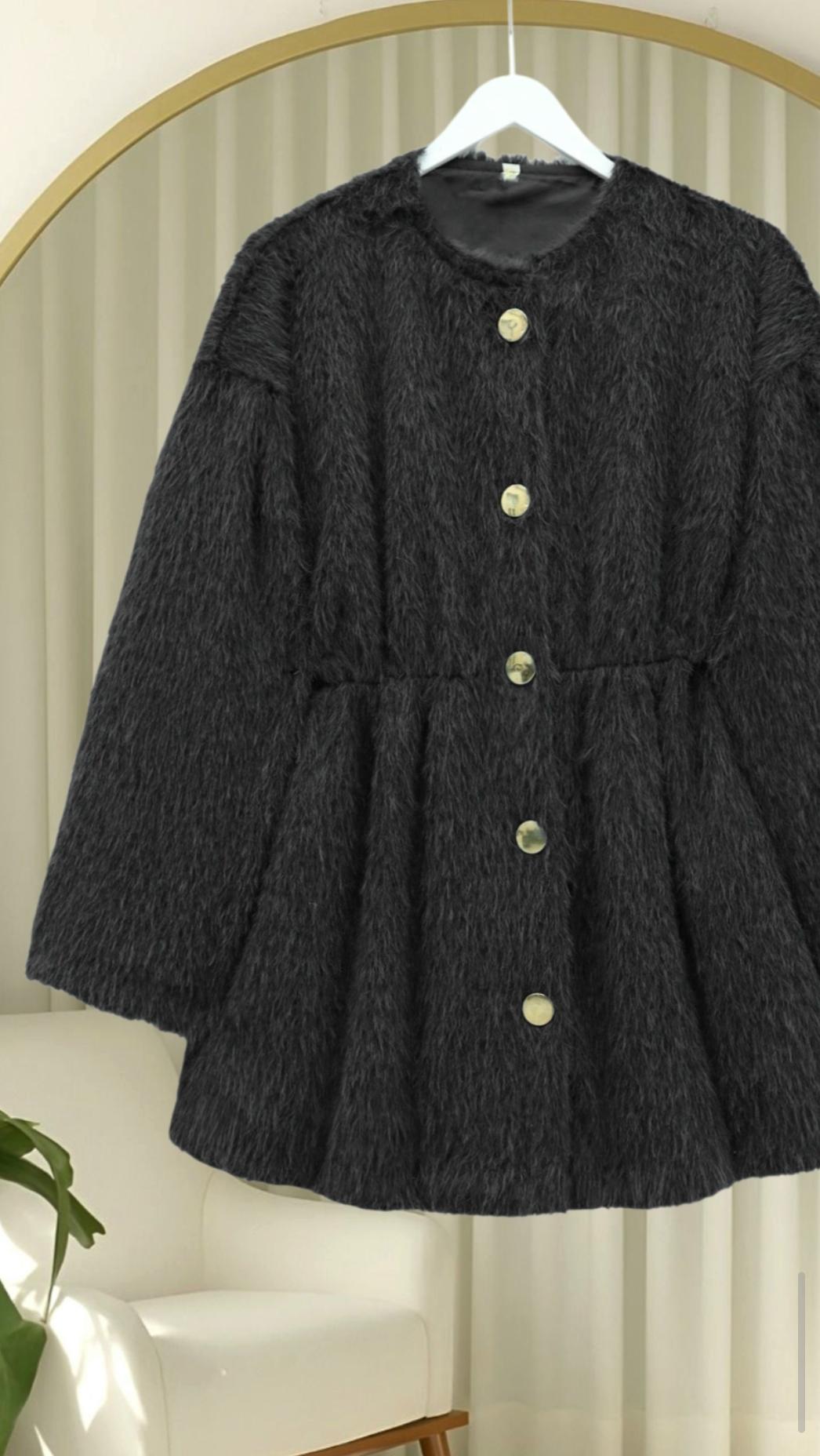 İçi Astarlı Beli Büzgülü Kürklü Ceket - Siyah Renk