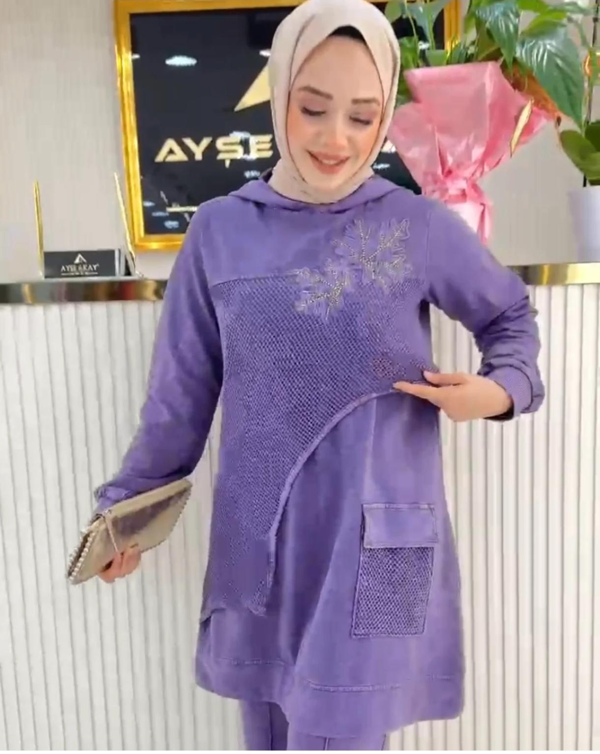 Bu takım, kalite, şıklık ve konforu bir araya getirerek modanın en son trendlerini yansıtır. İthal pamuk kullanımı sayesinde uzun süreli dayanıklılık sunar. Kendinizi özel hissetmek ve zarif bir görünüm elde etmek istiyorsanız, bu detaylı takım ideal bir seçenek olacaktır.