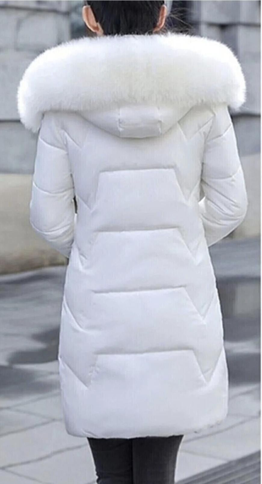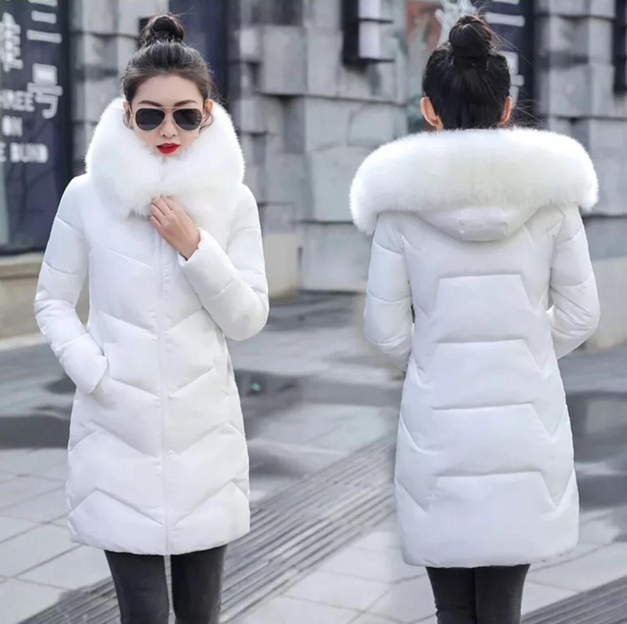 Kişlik Kapişonu Kürklü Kadın Şişme Mont - Beyaz Renk