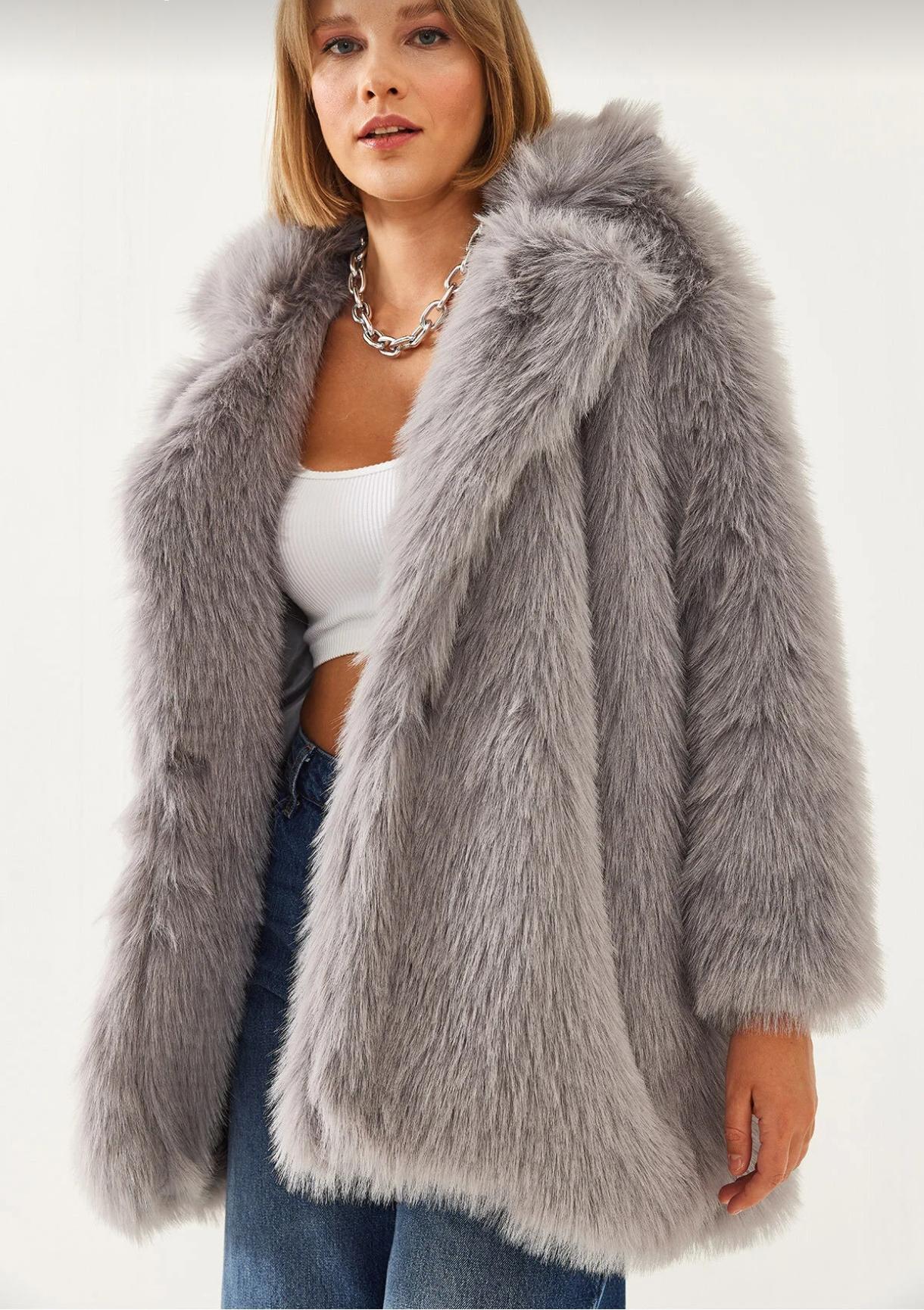 Şıklığı ve zarafeti bir araya getiren gri renk kürk ceket, her kadının dolabında olması gereken özel bir parçadır. Hem günlük hayatta hem de özel davetlerde rahatlıkla kullanılabilecek bu ceket, şıklığı ile göz alıyor.