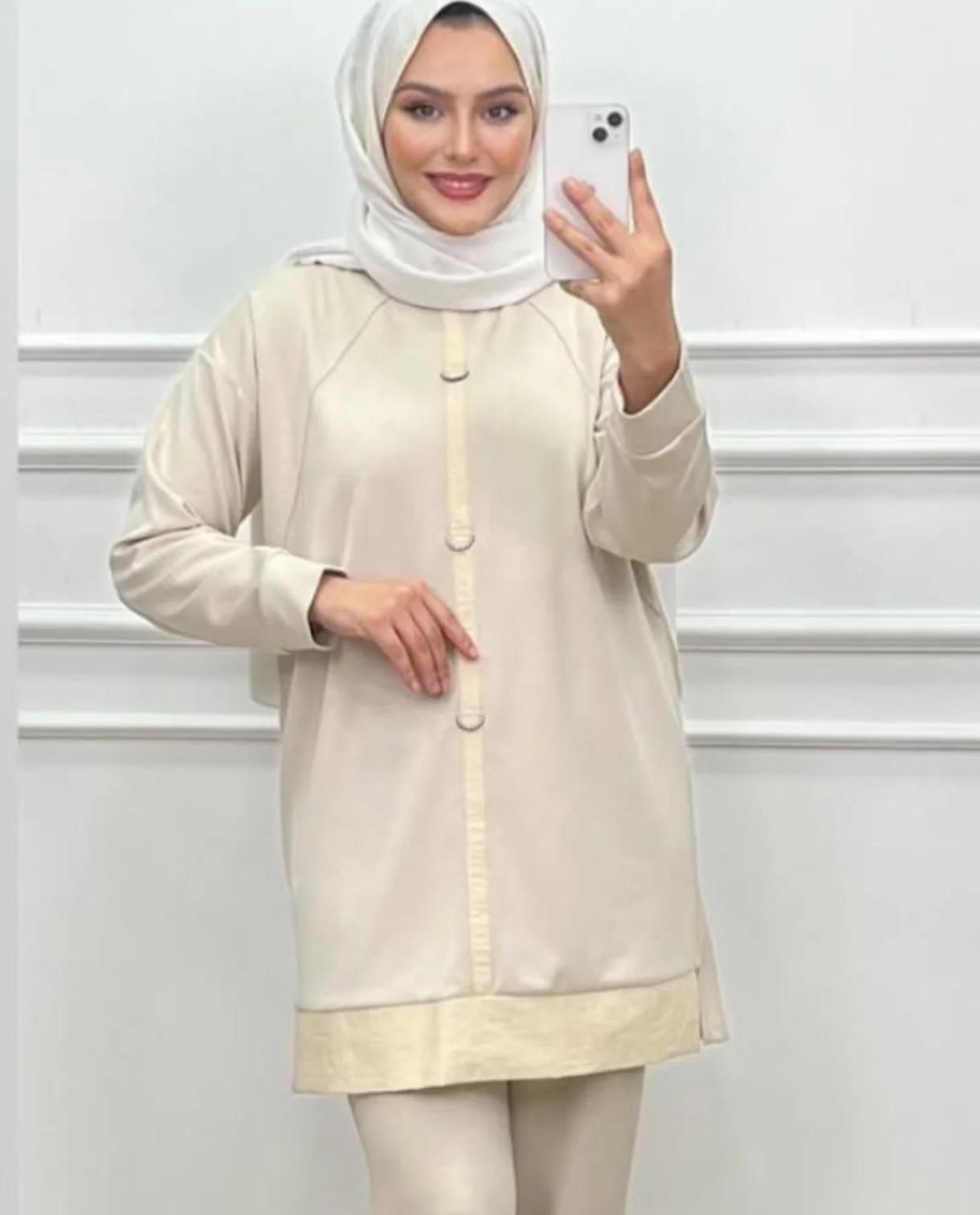 • Tasarım: Takım, zarif bir kesime sahip olup, taş detaylarıyla süslenmiştir. Bu detaylar ürüne şıklık katarken, herhangi bir kombinle kolayca uyum sağlar.