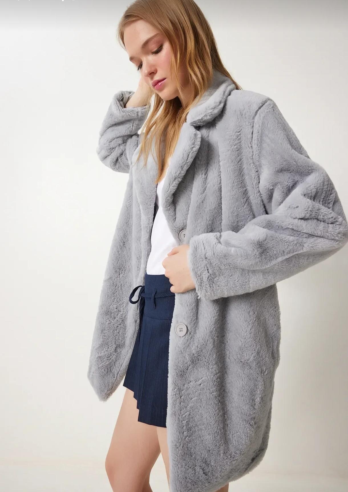 Peluş kürk kısa kaban, hem şıklığı hem de konforu bir arada sunan benzersiz bir giyim parçasıdır. Unutulmaz anlarınızda yanınızda olacak bu kaban, kış aylarında stilinizi en üst seviyeye taşımaya aday! Modele bir göz atın ve bu kışın en trend parçası ile buluşun!
