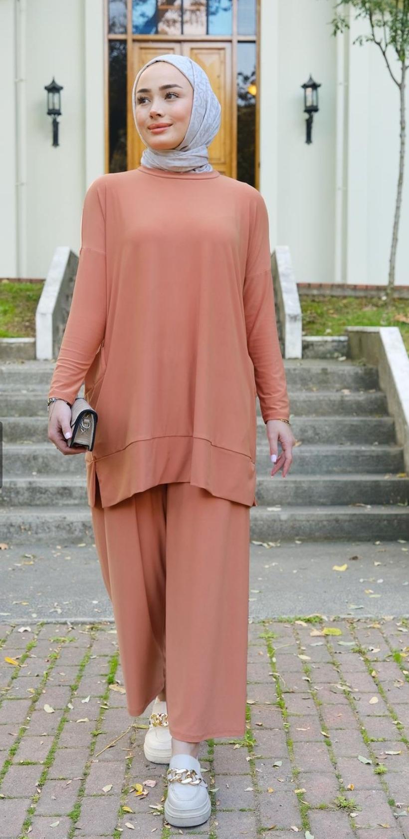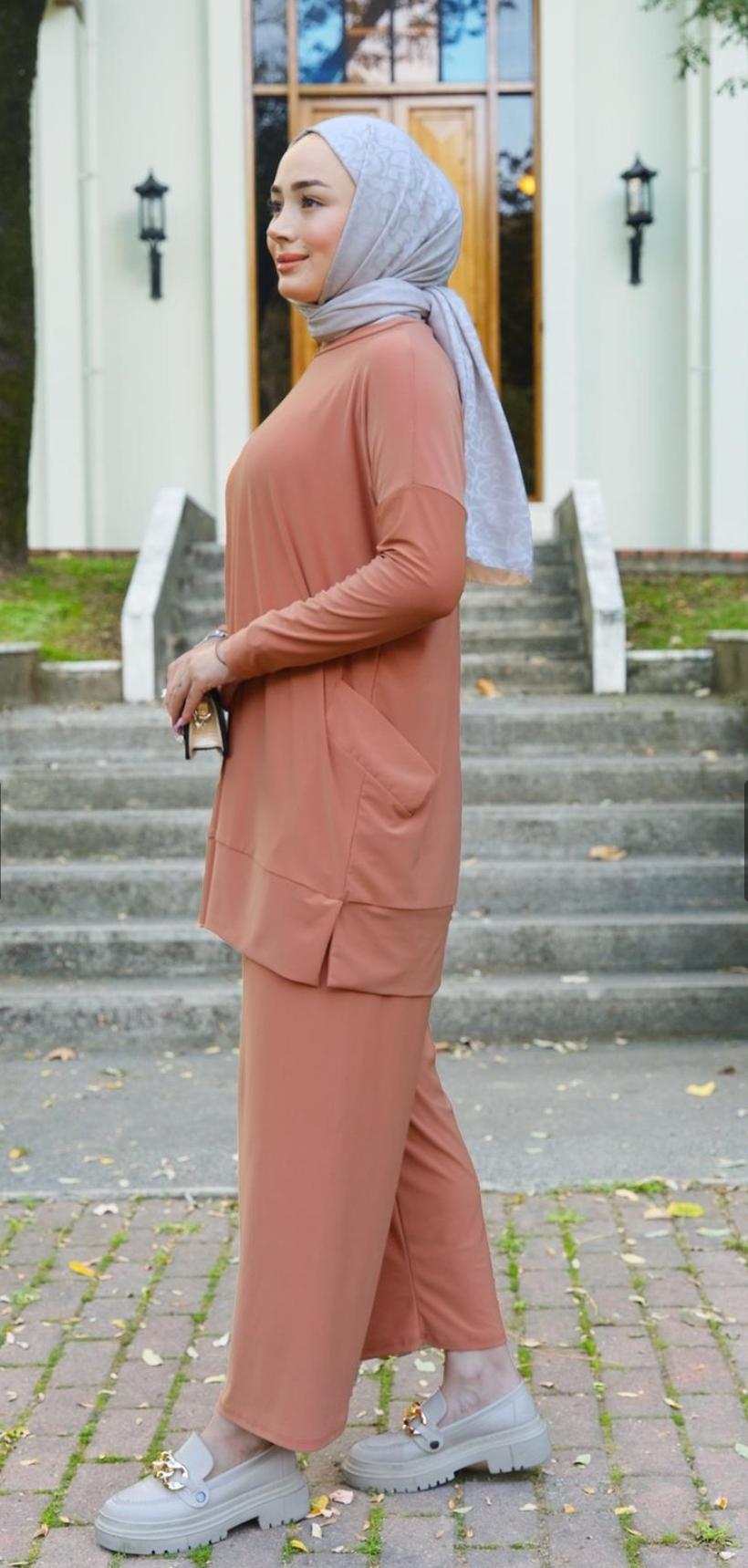 Şıklığı ve konforu bir arada sunan Sendy Kumaş Yanlar Cepli Tarçın Renk Takım, modern kadınların gardırobunun vazgeçilmez parçalarından biri olmaya aday. Hem günlük kullanım hem de özel davetler için ideal olan bu takım, zarif tasarımıyla dikkat çekiyor.