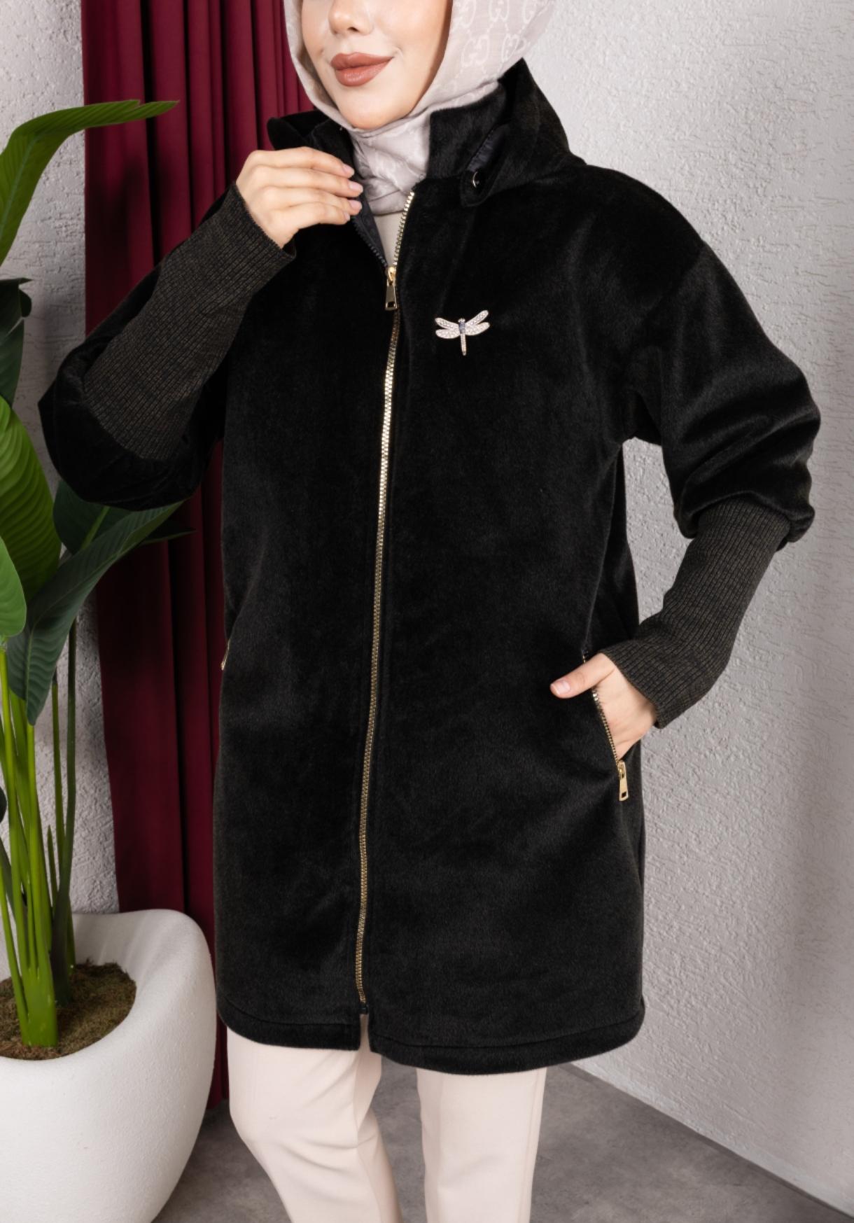 Tay Tüyü Angora triko Kol detaylı kaban Haki renk